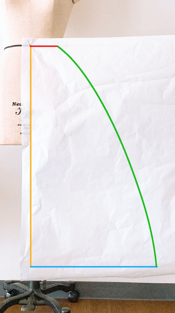 ウエスト寸法÷3.14÷2=ウエスト半径(画像赤線)