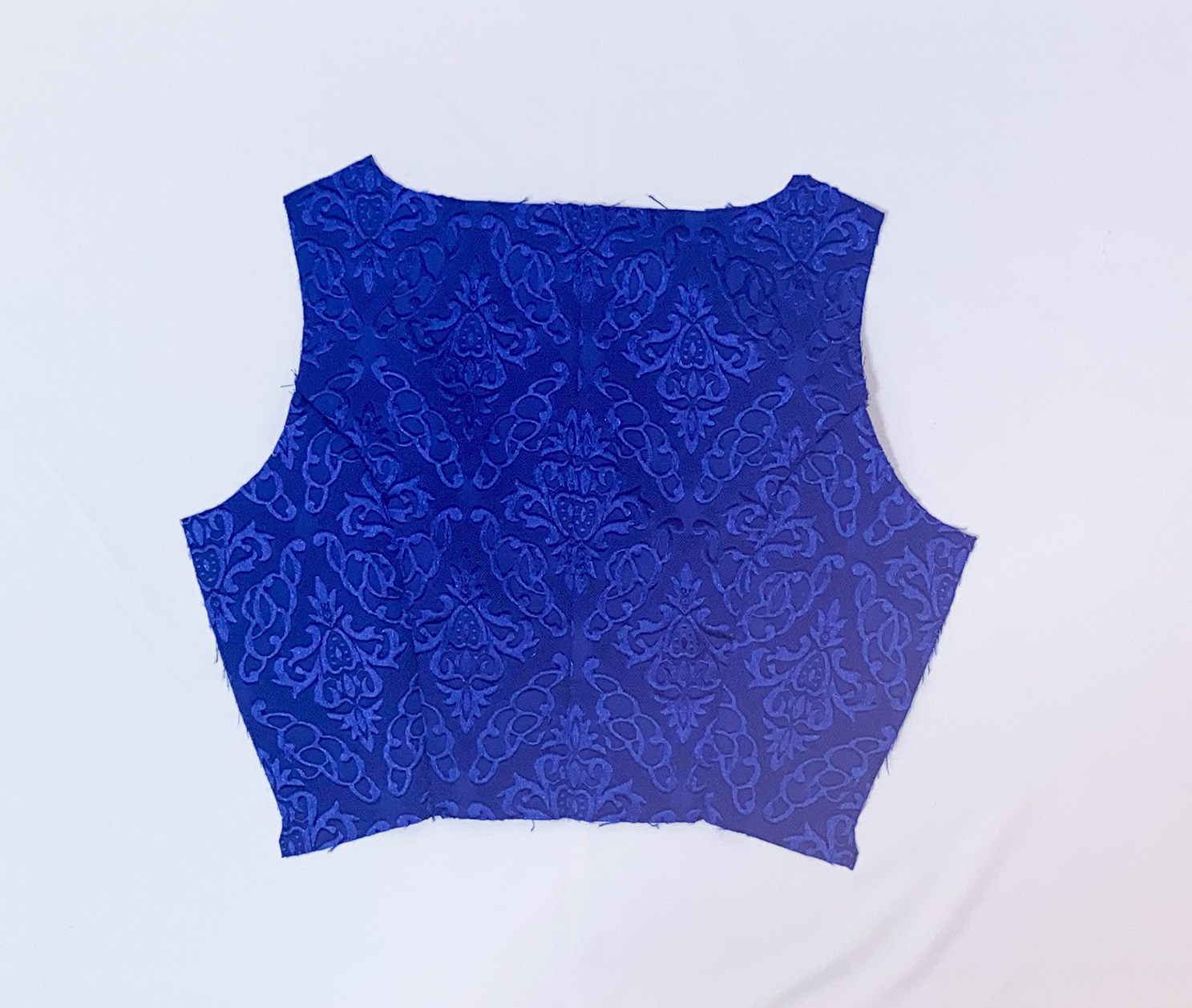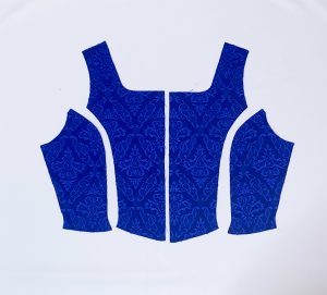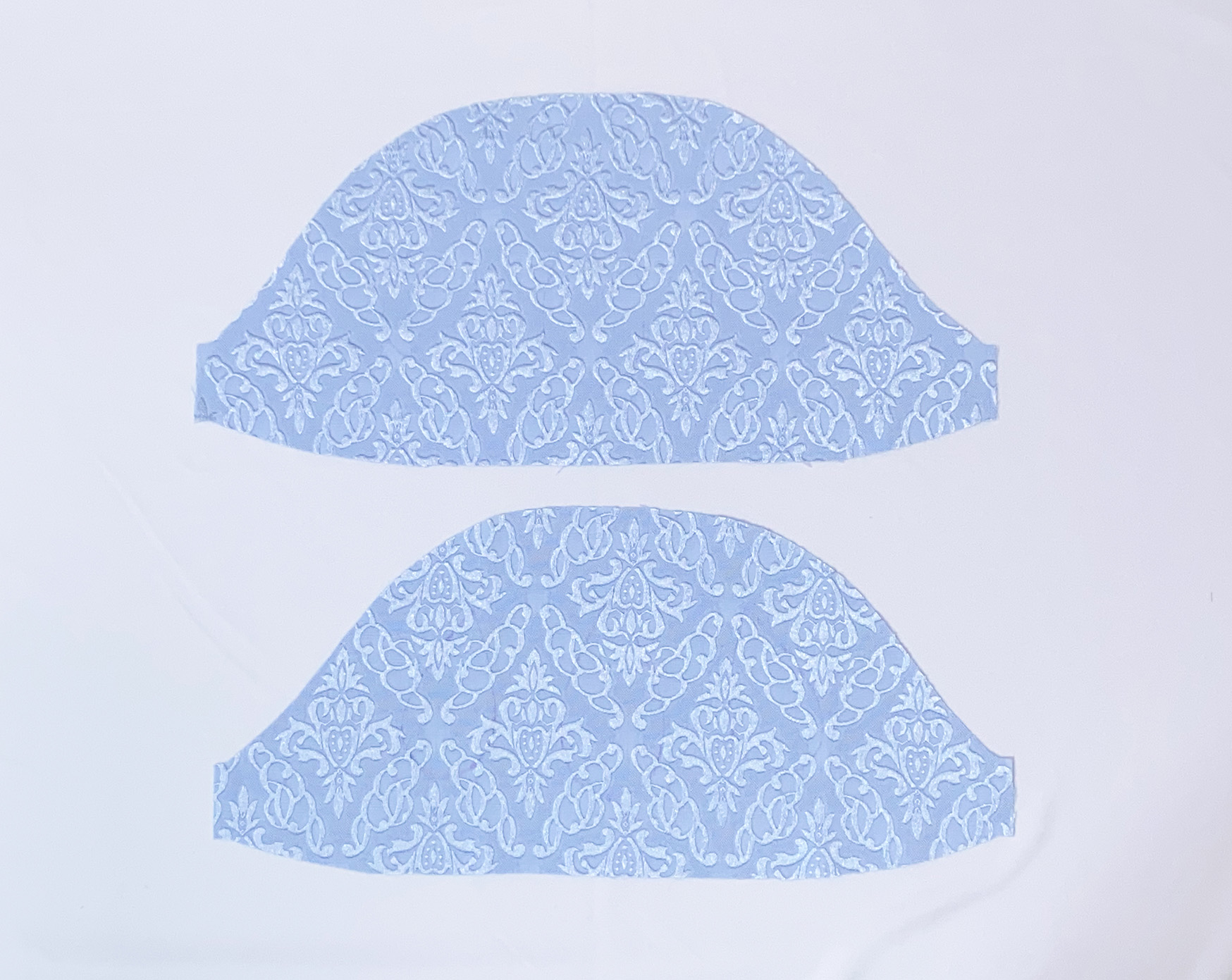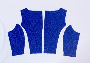 ※袖はブルーの下に重ねるレッドの生地も同じ形で裁断してください。