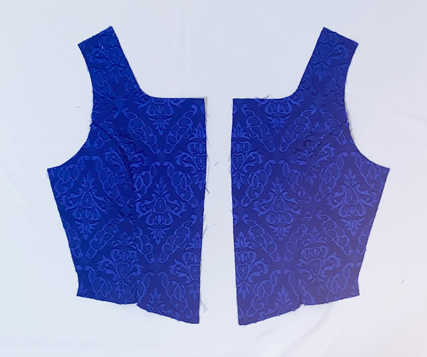 ①表身頃と脇を左右それぞれ縫い合わせます。(前中心は開けたままです)