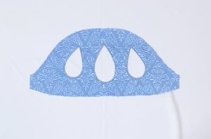 また、袖の赤い部分の見え方は色々な作り方がありますが、こちらではしずく型のくりぬき加工で表現しています。