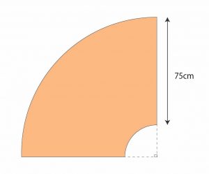 スカート丈は75cm、90度の扇形を3枚使用した、270度のフレアスカートです。