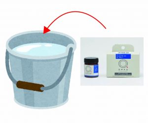 ①沸騰したお湯をバケツに入れ、【あらかじめ紙コップなどで溶かした染料】を入れ、撹拌します。