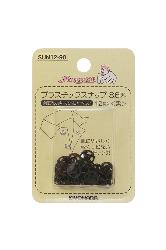 ・【洋裁材料】プラスチックスナップボタン8.6mm 黒 12組入