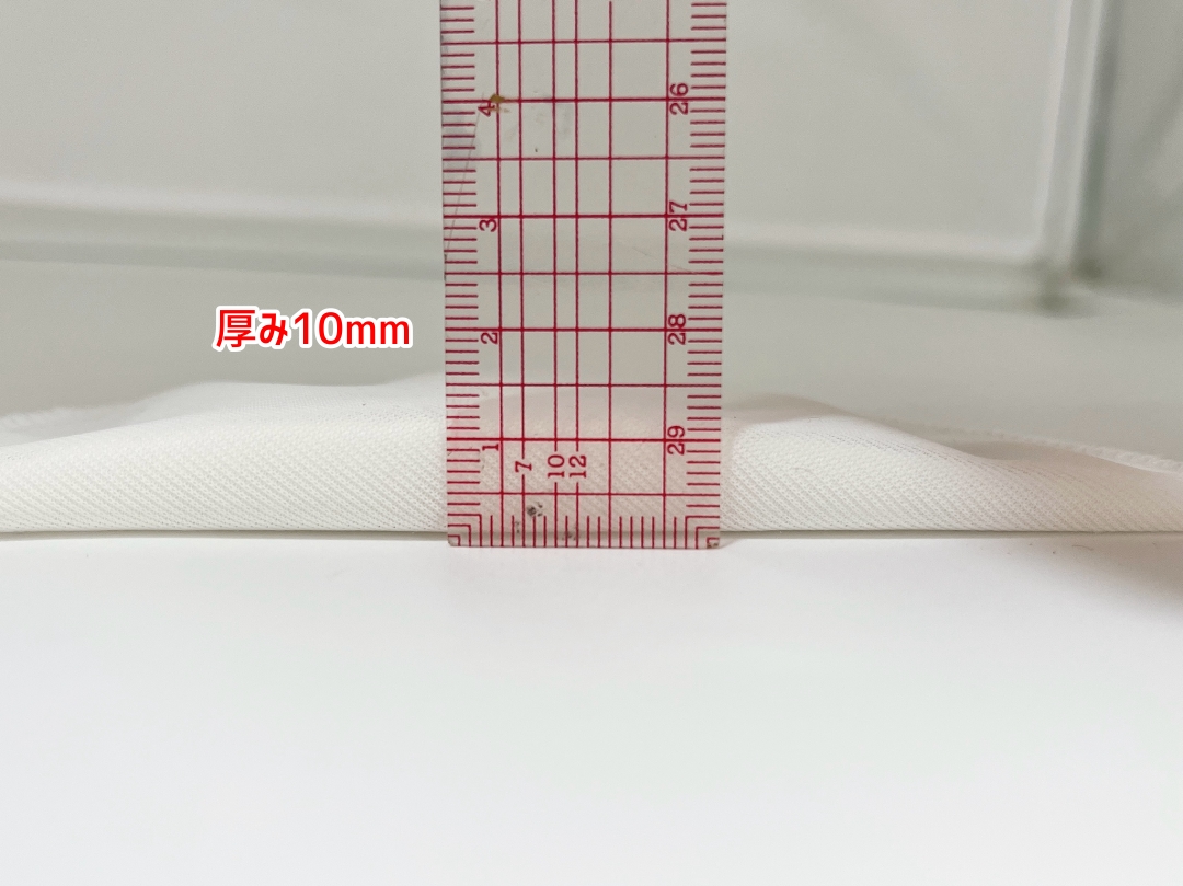 肩パットは端に向かって薄くなっているので、縫い付け後も目立ちにくいです♪