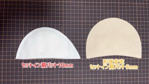 形状安定セットイン肩パット5㎜→高さ112㎜と30㎜ほど高さが長いですが、その分自然な方のラインに仕上がります。