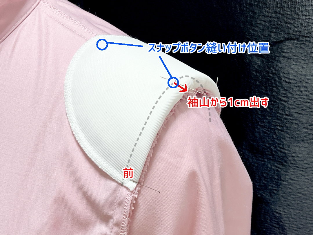 セットイン肩パット10mmはスナップボタンを縫い付けての使用がオススメです!
