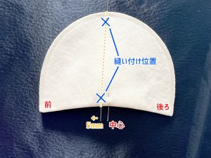 中心よりも5㎜程前側が肩パット肩線になります。