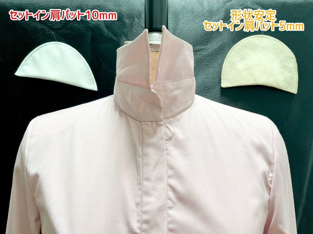 ジャケットなどの裏地のある衣装、自然に肩のラインを仕上げたい衣装には「形状安定セットイン肩パット5mm」
