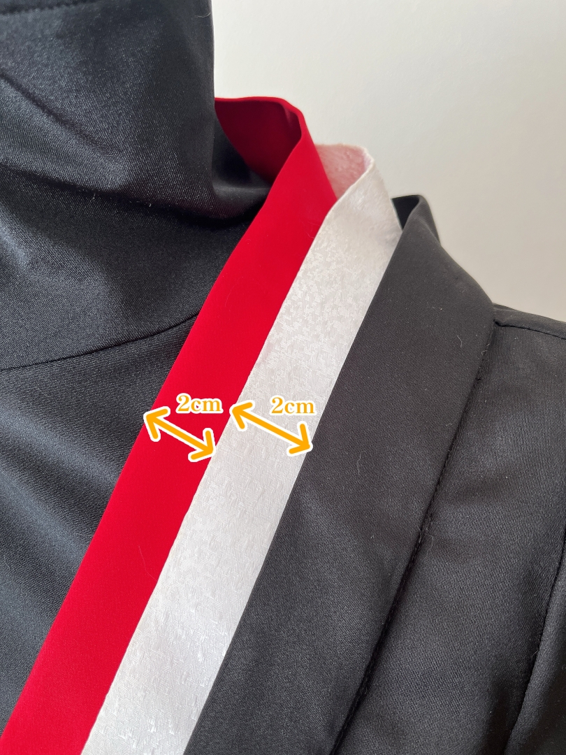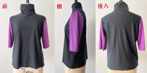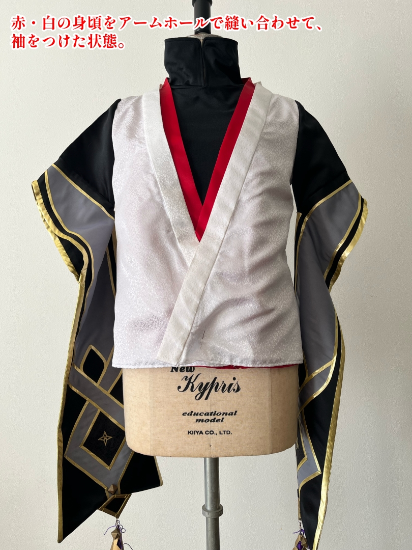 身頃を赤・白・黒でそれぞれ縫製し、赤・白はアームホールで縫い合わせています。