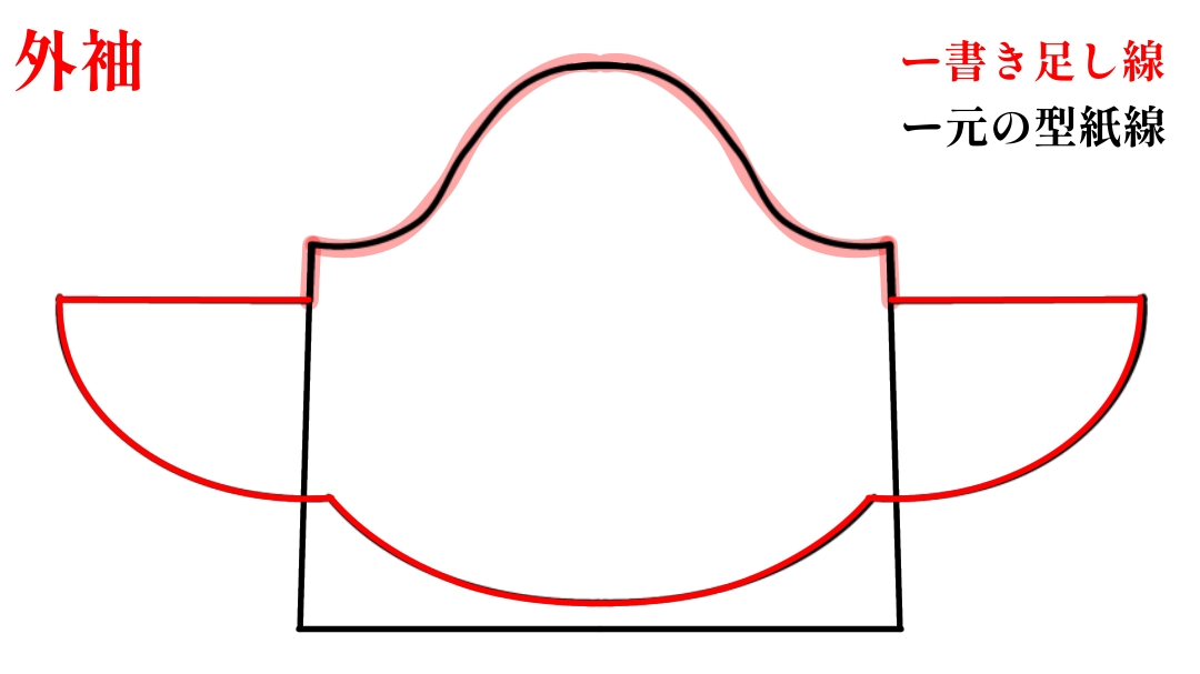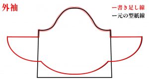 振袖部分を袖下左右に書き足しています。