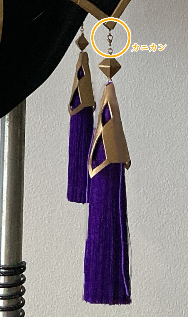 タッセルは洗濯の際取り外しができるように、カニカンを使用しています。