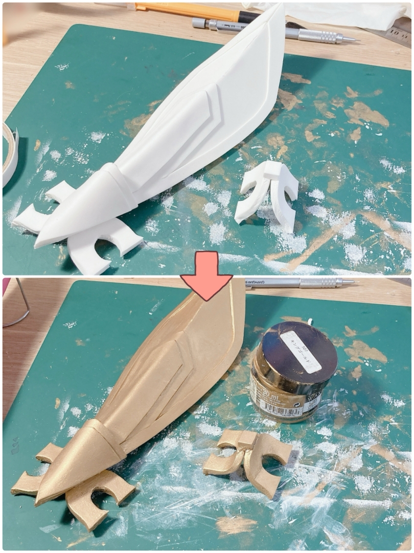 ギルティングワックスは造形の布貼りが苦手な方でも簡単に金属のような仕上がりにできる塗料です♪