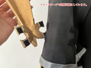 衣装の洗濯を可能にするため、造形部分はマジックテープで着脱可能にしています。
