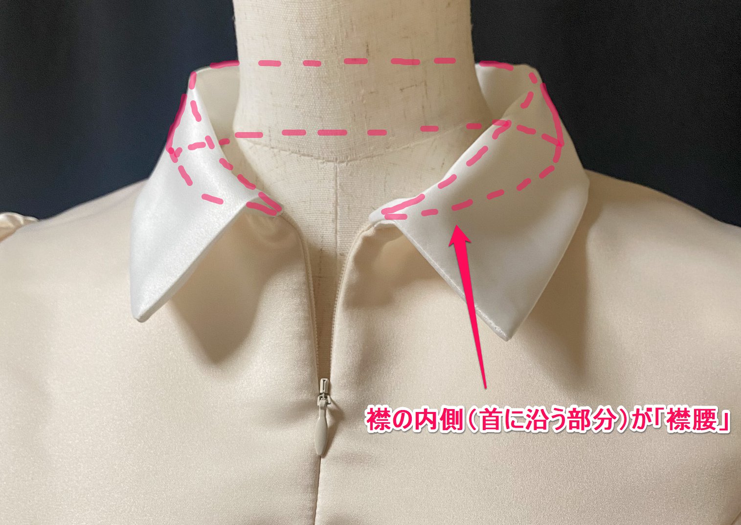 後ろファスナーの型紙なのにシャツ襟があってつけられない…!