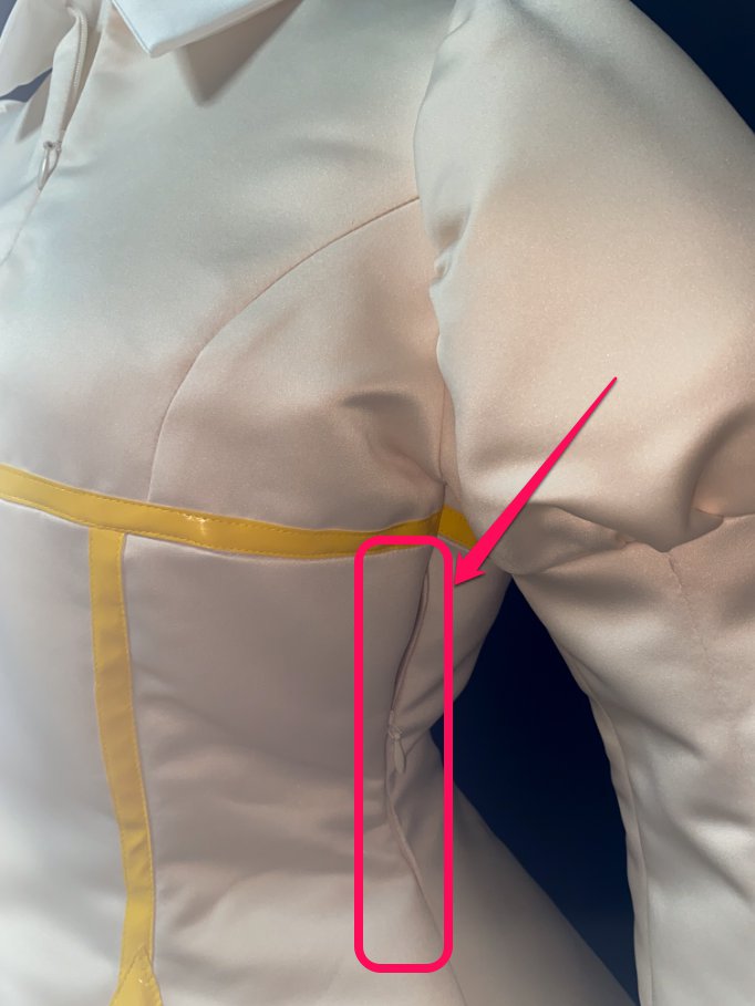 …今回はシャツ襟がつくため、ファスナー位置を後ろから前+脇に移動しています。