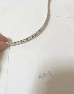 型紙を改造したら、縫い合わせる箇所(襟ぐり)の長さが身頃と襟の型紙で揃っているか、メジャーで測って確認しておきましょう♪