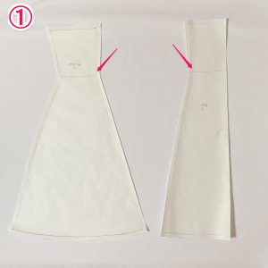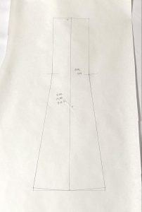 …今回は4枚の生地を縫い合わせてラッパ状になるように製図しました。