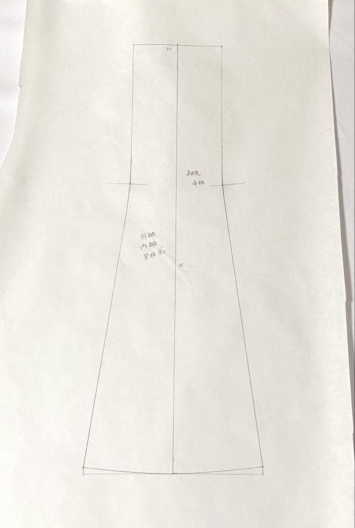 ⑦袖先に向かって広がる部分を製図します。