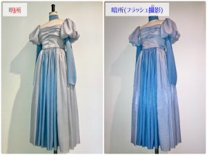 生地全体にラメ糸が織り込まれているので、光の角度によって美しい煌めきが生まれ、衣装に華やかな印象を与えてくれます。