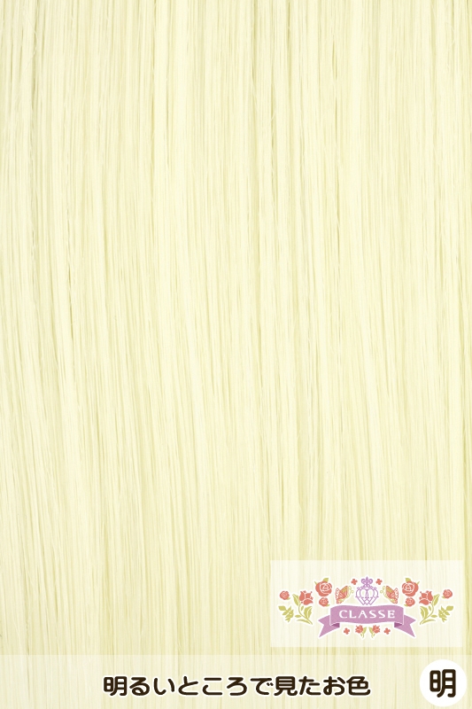 <サイズ> 横幅:約54cm 毛の長さ:約50cm <重量> 約170g ▼コメント 貼るだけで簡単にウィッグの表面をキレイにできる毛束です。 根本の毛束を折り返しているので、縫い目が見えず自然に仕上がります。 分け目や結い上げスタイルなど、どうしても透けてしまう部分にはもちろん メッシュ、毛量出し、細いテールとしてもお使いいただけます。 <ゴールド01> 2種類の薄いゴールドとオフホワイトをミックス 明るいクリームイエローに仕上げました。 白髪に近い明るい金髪です。 ★色についてのご注意★ PROとSARAは繊維が異なるため、色番号が同じでも繊維の色は同じではありません。 バンス・毛束の同時購入の際はご注意ください。 |