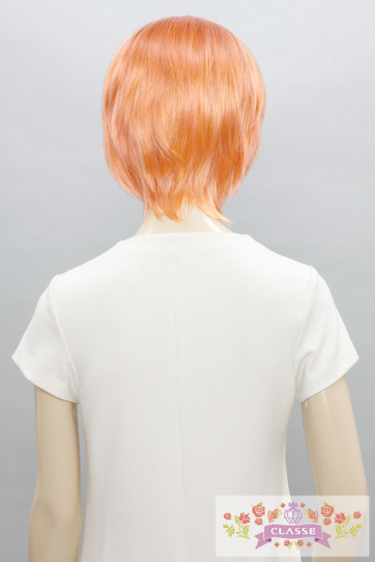 <スタイル> 前髪:22cm(つむじ〜鼻あたり) 横髪:28cm(つむじ〜頬骨のあたり) 後髪:36cm(つむじ〜首の付け根あたり) <つむじ> (*)型人工頭皮 <重量> 約135g 男性キャラ用を意識して開発したショートヘアです。 逆毛(ふかし)は入れず、毛量を大幅に増やし、 簡単に自由なスタイリングできるウィッグを目指しました。 ショートヘアの形に仕上げてあるので、 カットの手間が少なく、簡単にスタイリングできます。 様々なショートヘアに対応できるよう、 もみあげと襟足を意識的に少し長くし、 全体に軽くレイヤーを入れております。 <オレンジ02> ピンクとオレンジにゴールドをミックス 顔に馴染みやすい、明るくポップな色に仕上げました 光沢の少ないオレンジピンクです < 使用マネキン > マネキンAにて撮影してます |