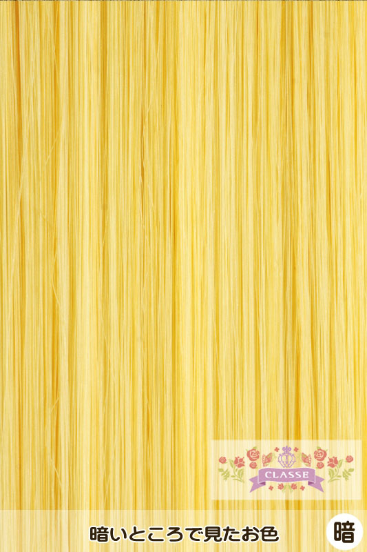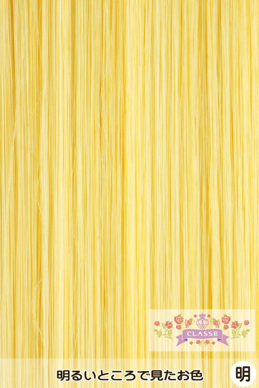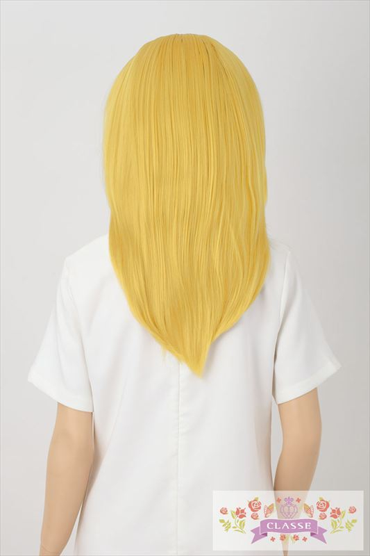フロントレース部分:約35cm 後ろ:約55cm ▼つむじの形状 つむじなし 生え際手植え加工 ▼重量 約300g ▼コメント ★フロントレースを使用した毛流れが上向きのオールバックウィッグ。 ★毛量しっかりで立ち上げても透けにくい。 ★下向き仕様の襟足で、自毛までしっかりカバー。 前髪からもみあげにかけてメッシュ地のフロントレース仕様。 1本1本手植えされているので自然な生え際に。 フロントレースの植毛部分はお好みで毛を抜いて使用する事も可能です。 前髪はおろして使用することもできます。 内側にコームピンが内蔵されており、ウィッグがずれるのを防ぎます。 ■注意事項■ ・染色を行いますと、フロントレース部分が染まりますのでご注意下さい。 ・レースをカットされる際は植毛部分より5mmほど空けてカットしてください。 ・レースがほつれる場合は、レースの縁にほつれ止め等をご使用ください。 <イエロー09> クリームイエローをベースに、ごく少量のオレンジをミックス。 鮮やかなカナリヤイエローに仕上げています。 ★色についてのご注意★ PROとSARAは繊維が異なるため、色番号が同じでも繊維の色は同じではありません。 バンス・毛束の同時購入の際はご注意ください。 |
