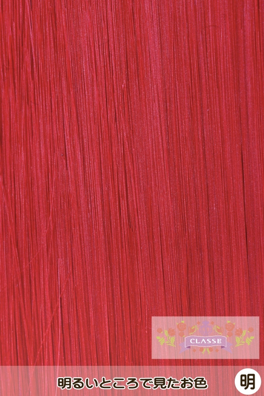 フロントレース部分:約28cm 頭頂部(人工頭皮部分):約80cm 後ろ:約100cm ▼つむじの形状 頭頂部人工頭皮仕様(つむじなし) 生え際手植え加工 ▼重量 約400g ▼コメント ★フロントレースを使用したオールバックウィッグのロングタイプ。 ★広めの人工頭皮仕様なのでどこにでも分け目を作れる。 ★やや多めの毛量で作られているため、ヘアアレンジしても透けにくく、安心。 前髪からもみあげにかけてメッシュ地のフロントレース仕様。 1本1本手植えされているので自然な生え際に。 フロントレースの植毛部分はお好みで毛を抜いて使用する事も可能です。 前髪はおろして使用することもできます。 内側にコームピンが内蔵されており、ウィッグがずれるのを防ぎます。 ■注意事項■ ・染色を行いますと、フロントレース部分が染まりますのでご注意下さい。 ・レースをカットされる際は植毛部分より5mmほど空けてカットしてください。 <レッド18> 濃淡の異なる三色の赤をミックスし、 エネルギッシュなスタンダードレッドに仕上げました。 濃いハイビスカスのような、鮮やかな色味です。 ★色についてのご注意★ PROとSARAは繊維が異なるため、色番号が同じでも繊維の色は同じではありません。 バンス・毛束の同時購入の際はご注意ください。 |