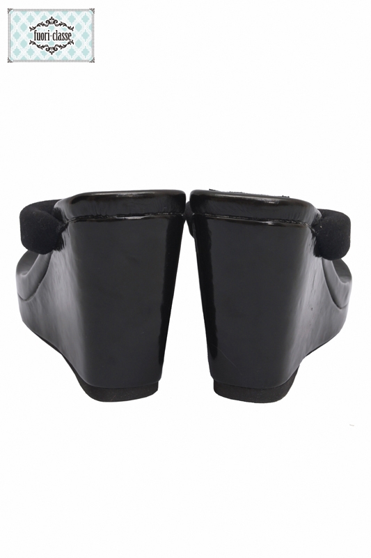 ヒール、底巻き素材に合皮エナメルを使用。