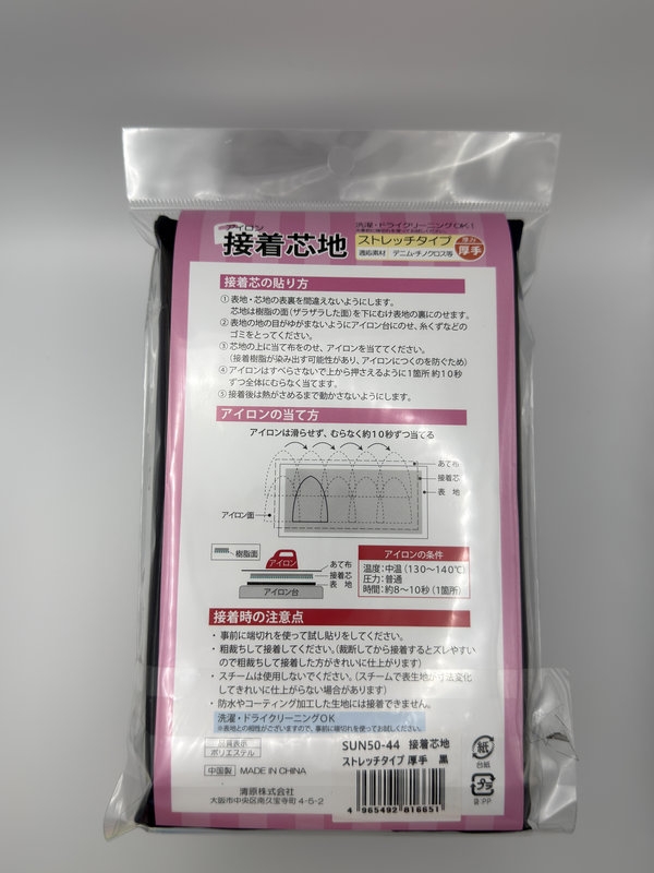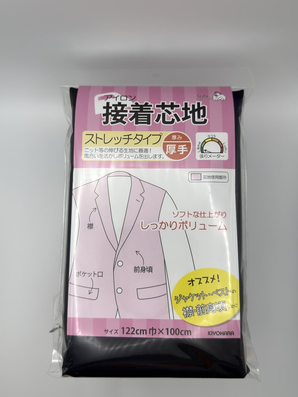 接着芯地 ストレッチ 厚手 黒![]() 伸びる生地をしっかり補強できる、ストレッチタイプの厚手接着芯地です。 |
