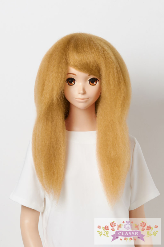 ▼サイズ 前髪:約35cm(頭頂部~顎下のあたり) 横髪:約60cm(頭頂部~胸下のあたり) 後髪:約60cm(頭頂部~胸下のあたり) ▼つむじの形状 つむじなし ▼重量 約335g ▼コメント ★ふかし加工によるスーパーボリュームで二次元スタイルを再現! ★簡単にアニメスタイルを再現できる! ★ボリュームたっぷりなので透けにくい PROの加工向きウルフスタイルです。 全体ふかし加工仕様。 低温のヘアアイロン(110℃ほど)で一部ボリュームを抑えることも可能。 ■注意事項■ ※熱を加えるとふかしがのび、ボリュームが減ってしまいますので、ご注意ください。 ※熱湯を使用する染色はできません。 <ゴールド30>5色の繊維をミックスした立体感のあ る色です。 ミックスが自然で、深みのある色合いです。 顔なじみの良いヘーゼル色に仕上げています。 ★色についてのご注意★ PROとSARAは繊維が異なるため、色番号が同じでも繊維の色は同じではありません。 バンス・毛束の同時購入の際はご注意ください。 |