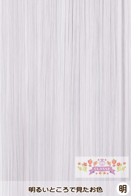 フロントレース部分:約28cm 頭頂部(人工頭皮部分):約80cm 後ろ:約100cm ▼つむじの形状 頭頂部人工頭皮仕様(つむじなし) 生え際手植え加工 ▼重量 約400g ▼コメント ★フロントレースを使用したオールバックウィッグのロングタイプ。 ★広めの人工頭皮仕様なのでどこにでも分け目を作れる。 ★やや多めの毛量で作られているため、ヘアアレンジしても透けにくく、安心。 前髪からもみあげにかけてメッシュ地のフロントレース仕様。 1本1本手植えされているので自然な生え際に。 フロントレースの植毛部分はお好みで毛を抜いて使用する事も可能です。 前髪はおろして使用することもできます。 内側にコームピンが内蔵されており、ウィッグがずれるのを防ぎます。 ■注意事項■ ・染色を行いますと、フロントレース部分が染まりますのでご注意下さい。 ・レースをカットされる際は植毛部分より5mmほど空けてカットしてください。 <シルバー15> シルバーに2色のパープルをミックス。 淡くパープルがかったシルバーに仕上げています。 |