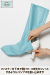 ★手持ちのパンプスがブーツに早変わり!★ リニューアルして更に進化しました ・ブーツカバーを自由にアレンジできるよう、A4サイズの共布を2枚セット ・より強く、よりスムーズに動くファスナーに変更! ・底布の内側にゴムを使用して、パンプスが出し入れしやすくなりました! ストレッチ合皮製のブーツカバーです。 お手持ちのパンプスに装着してお使いください。 柔らか素材を使用しているので動きやすさ抜群! !こんな時に便利! ・荷物が多くてブーツが持っていけない時 ・切ったり装飾を縫い付けたり、アレンジしたい時 ・欲しい色のブーツがなかった時 ■サイズ 丈(かかとから履き口まで):約40cm 筒周り(伸縮性あり):約33cm~37cm 適合パンプスサイズ:22cm~25.5cm ※パンプスの形状により適合サイズでも合わない場合がございます。ご了承ください。 ■材質 ストレッチ合成皮革 ■装着方法 1.ファスナーを下まで開け、つま先がフィットするようにパンプスを差し込みます。 ※サイズの大きいパンプスやつま先の形状が大きい靴は、きっちりとつま先まで入れ込んでください。 つま先がしっかりはまっていないと、かかとのファスナーが上げにくくなります。 2.かかとの上くらいまで、ファスナーを上げます。 3.パンプスに足を入れて、ファスナーを上げれば完成です。 ※サイズの大きい靴の場合はファスナーが非常に上げにくいため、できれば人に上げてもらうなどしてください。 ■取り扱い上のご注意 ・過度な力を加えますと破損いたします。ご注意ください。 ・合皮の色、大きさには若干の個体差があります。あらかじめご了承ください。 ・本商品は写真撮影小物として商品開発しており、歩行用ではありません。 歩行時の破損や怪我・事故等に関して、当社は一切の責任を負いかねますのでご了承ください。 |