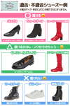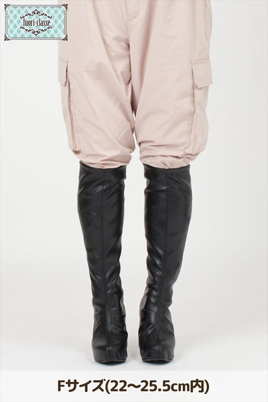 リニューアルして更に進化しました ・ブーツカバーを自由にアレンジできるよう、A4サイズの共布を2枚セット ・より強く、よりスムーズに動くファスナーに変更! ・底布の内側にゴムを使用して、パンプスが出し入れしやすくなりました! ストレッチ合皮製のブーツカバーです。 お手持ちのパンプスに装着してお使いください。 柔らか素材を使用しているので動きやすさ抜群! ノーマルサイズより全体に4cm程筒周りを太くしました。 !こんな時に便利! ・荷物が多くてブーツが持っていけない時 ・切ったり装飾を縫い付けたり、アレンジしたい時 ・欲しい色のブーツがなかった時 ■サイズ 丈(かかとから履き口まで):約40cm 筒周り(伸縮性あり):約37cm~42cm 適合パンプスサイズ:22cm~25.5cm ※パンプスの形状により適合サイズでも合わない場合がございます。ご了承ください。 ■材質 ストレッチ合成皮革 ■装着方法 1.ファスナーを下まで開け、つま先がフィットするようにパンプスを差し込みます。 ※サイズの大きいパンプスやつま先の形状が大きい靴は、きっちりとつま先まで入れ込んでください。 つま先がしっかりはまっていないと、かかとのファスナーが上げにくくなります。 2.かかとの上くらいまで、ファスナーを上げます。 3.パンプスに足を入れて、ファスナーを上げれば完成です。 ※サイズの大きい靴の場合はファスナーが非常に上げにくいため、できれば人に上げてもらうなどしてください。 ■取り扱い上のご注意 ・過度な力を加えますと破損いたします。ご注意ください。 ・合皮の色、大きさには若干の個体差があります。あらかじめご了承ください。 ・本商品は写真撮影小物として商品開発しており、歩行用ではありません。 歩行時の破損や怪我・事故等に関して、当社は一切の責任を負いかねますのでご了承ください。 |