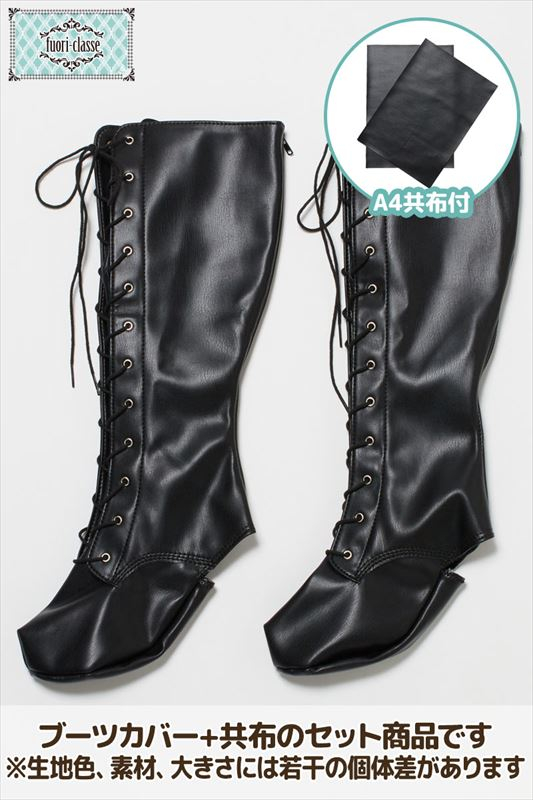 ★手持ちのパンプスがブーツに早変わり!★ リニューアルして更に進化しました ・ブーツカバーを自由にアレンジできるよう、A4サイズの共布を2枚セット ・より強く、よりスムーズに動くファスナーに変更! ・底布の内側にゴムを使用して、パンプスが出し入れしやすくなりました! ストレッチ合皮製の編み上げタイプのブーツカバーです。 お手持ちのパンプスに装着してお使いください。 ストレッチ素材を使用しているので動きやすさ抜群! !こんな時に便利! ・荷物が多くてブーツが持っていけない時 ・切ったり装飾を縫い付けたり、アレンジしたい時 ・欲しい色のブーツがなかった時 ■サイズ 丈(かかとから履き口まで):約36cm そのままの状態筒周り:約34cm~39cm ※編み上げ紐を緩めることで、もっと広げることができます。 適合パンプスサイズ:22cm~25.5cm ※パンプスの形状により適合サイズでも合わない場合がございます。ご了承ください。 ■材質 ストレッチ合成皮革 ■装着方法 1.ファスナーを下まで開け、つま先がフィットするようにパンプスを差し込みます。 ※サイズの大きいパンプスやつま先の形状が大きい靴は、きっちりとつま先まで入れ込んでください。 つま先がしっかりはまっていないと、かかとのファスナーが上げにくくなります。 2.かかとの上くらいまで、ファスナーを上げます。 3.パンプスに足を入れて、ファスナーを上げれば完成です。 ※サイズの大きい靴の場合はファスナーが非常に上げにくいため、できれば人に上げてもらうなどしてください。 ■取り扱い上のご注意 ・過度な力を加えますと破損いたします。ご注意ください。 ・合皮の色、大きさには若干の個体差があります。あらかじめご了承ください。 ・本商品は写真撮影小物として商品開発しており、歩行用ではありません。 歩行時の破損や怪我・事故等に関して、当社は一切の責任を負いかねますのでご了承ください。 |