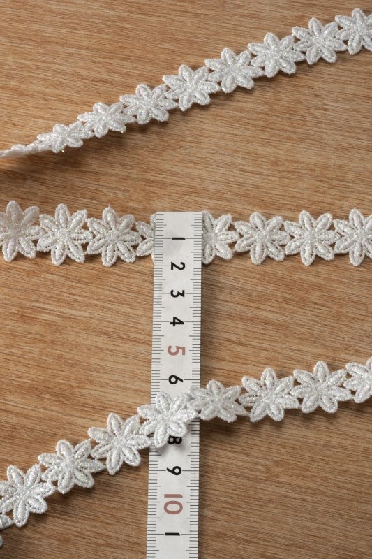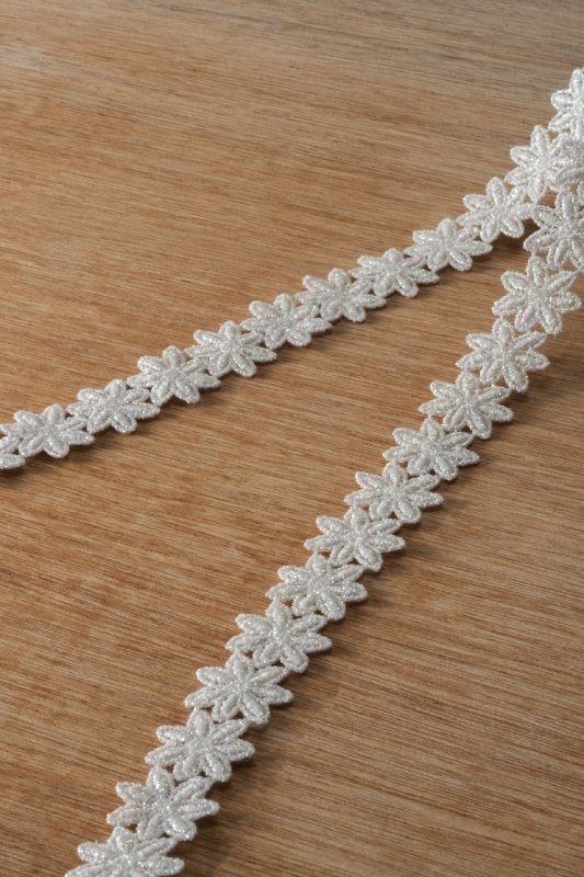 キラキラきれいなオーロララメが入ったケミカルレースです。 高品質の日本製! 1つ1つカットしてもワンポイントに使えます。 レース幅:約1.9cm 色:オフ白・オーロララメ 素材:綿・ポリエステル素材 洋服や小物のワンポイントにお勧めです。 1つ1つカットした場合、1mで約58個ご利用いただけます。 この商品は、1m以上の長さで分割して納品する場合があります。 分割なしでの納品が必須の場合は、ご注文お手続きの際、備考欄に 「分割不可」とご記入をお願いします。 |