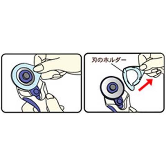 ホルダー付きで刃の交換が簡単。クロバーロータリーカッター45mmの専用替刃。