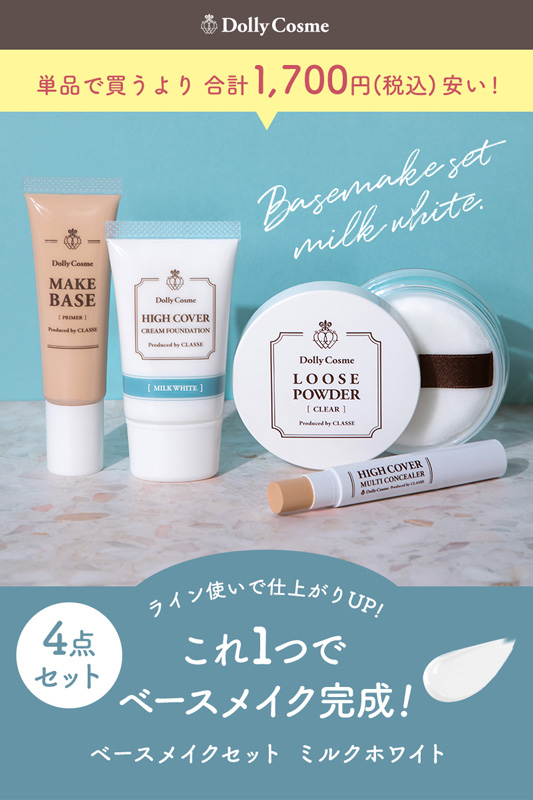コスプレ総合専門店クラッセがオリジナル開発した撮影用化粧品DollyCosme(ドーリーコスメ) 人気のハイカバークリームファンデーションをお得に買えるスターターキットです。 スーパーマットな写真映え2.5次元な肌で、至近距離の撮影にも自信! 単品で購入するより更にお得! ■内容物 ハイカバークリームファンデーション (ミルクホワイト) メイクベース ルースパウダー(クリア) ハイカバーマルチコンシーラー ■カラー説明 WH01 ミルクホワイト 透き通るような白色 ■使用方法 適量を指やスポンジ等に取り、少量ずつなじませるようにのばしてください。 ■生産国 日本(化粧品登録済) |