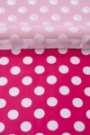 定番の水玉模様のサテン生地となります。水玉模様の程よい大きさが衣装に最適です。